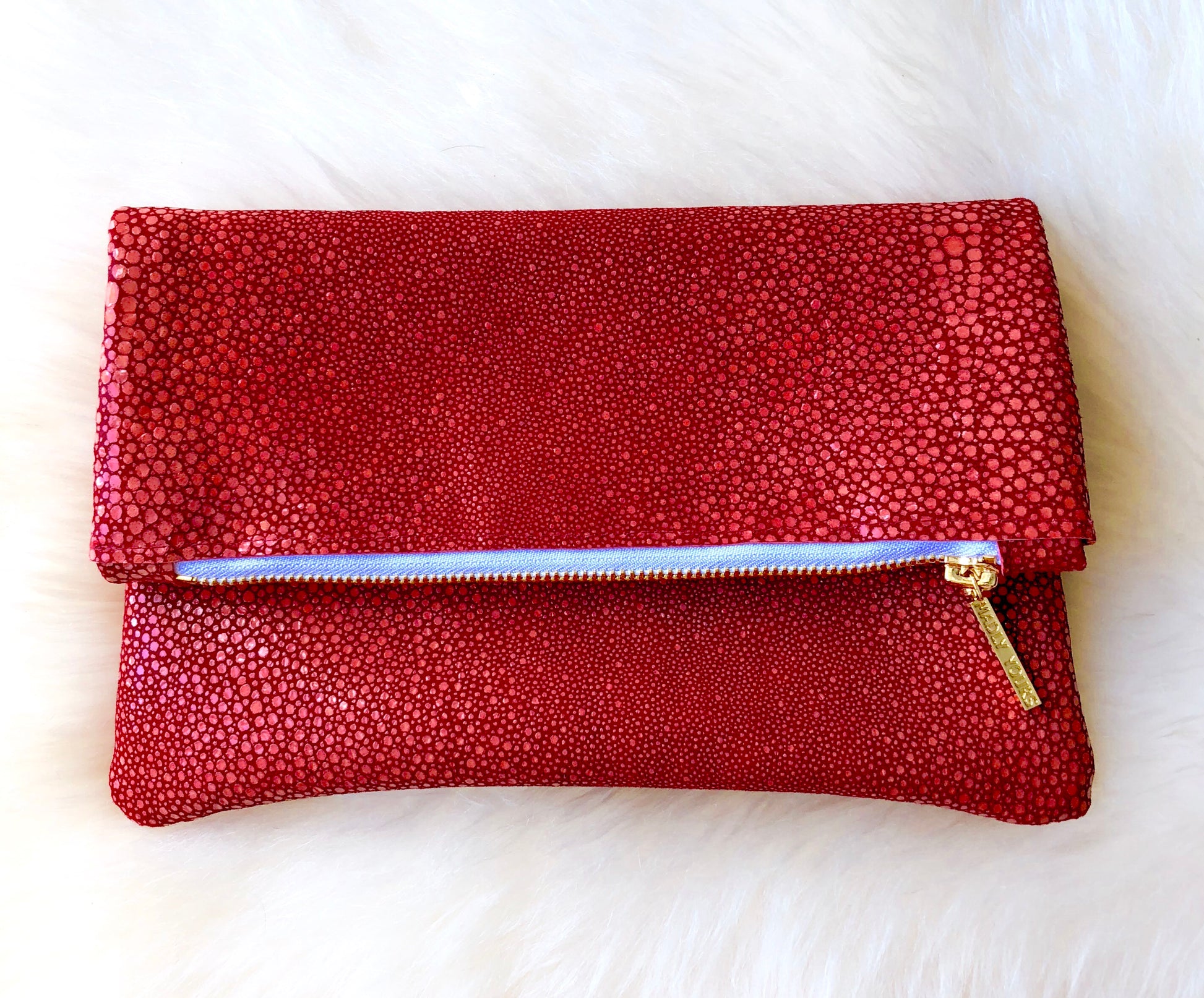 The CECE Foldover Clutch is versatile in size, sleek and adds the perfect hint of sass to any outfit. This clutch is handcrafted out of the finest full grain, stingry embossed leather, fully lined and adorned with a gold plated custom zipper pull.