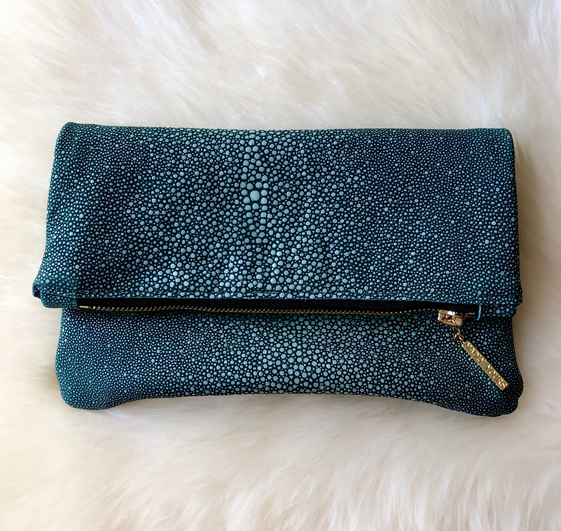 The CECE Foldover Clutch is versatile in size, sleek and adds the perfect hint of sass to any outfit. This clutch is handcrafted out of the finest full grain, stingry embossed leather, fully lined and adorned with a gold plated custom zipper pull.
