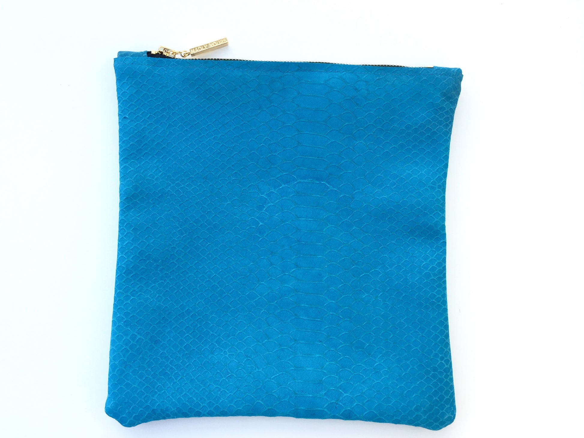 The MEAG Clutch is versatile in size, sleek and adds the perfect hint of sass to any outfit. This clutch is hand crafted out of the finest python embossed, soft leather, fully lined and adorned with a gold plated zipper pull. Can be worn as an oversized clutch or foldover. It's stylish design is bound to have your friends drooling over your newest accessory.