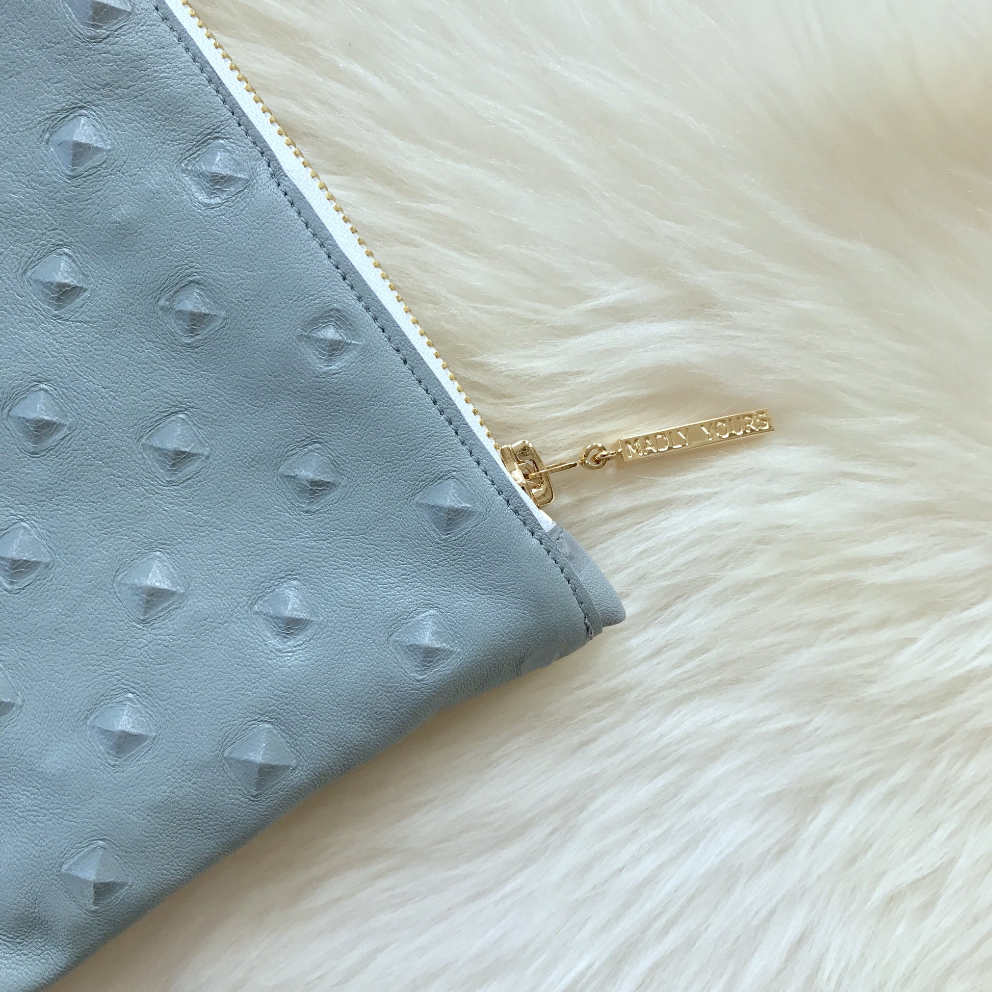 The SARE Clutch is versatile in size, sleek and adds the perfect hint of sass to any outfit. This clutch is hand crafted out of the finest lambskin embossed leather, fully lined and adorned with a gold plated zipper pull.